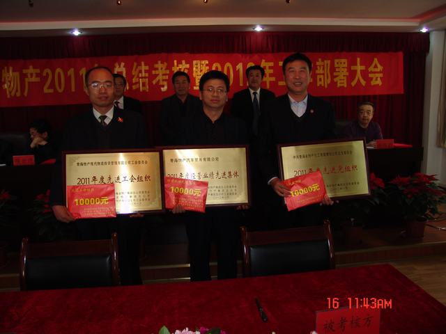 1月16日,集團召開2011年工作總結考核暨2012年工作部署大會,省國資委領導蒞臨大會、集團領導、各公司領導班子、總部全體員工及2011年度先進個人參加了會議。集團總經理王玉輝作了題為《奮楫圖治夯實基,敦行致遠續新篇,在"十二五"科學發展的大道上闊步前進》的工作報告,黨委書記白家林作了題為《融入中心創先進,提升發展爭先鋒,大力推進青海物產集團科學發展新跨越》的黨委工作報告.會上通報了集團2011年完成省國資委下達的經營考核指標情況及各公司主要工作成績和不足,對2012年工作任務及黨建工作進行了安排部署。